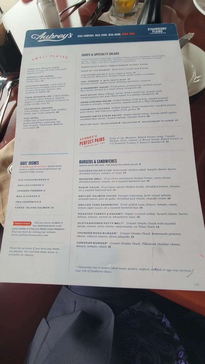 Welcome to Aubrey's Strawberry Plains, a delightful culinary gem nestled in Knoxville, TN. This charming eatery beckons food lovers with its inviting atmosphere and a menu that bursts with flavor. Offering crowd-pleasers like the Chicken Finger Platter and Buttermilk Fried Chicken, you’ll find dishes that are comfortingly familiar yet meticulously crafted.